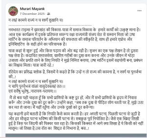 और मयंक मुरारी ने अपने फेसबुक में क्या लिखा और इसका अर्थ क्या लिखा, वो इसी आलेख में ऊपर दिया गया है। आप खुद मिला लें या रांची में ही किसी संस्कृत के विद्वान से जाकर मिल लें कि क्या मुरारी मयंक ने जो श्लोक लिखे हैं या उसके अर्थ लिखे हैं, वो सही-सही हैं। आपको स्वयं पता लग जायेगा।