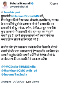 सोशल साइट के माध्यम से DGP अनुराग गुप्ता के साथ-साथ CM हेमन्त सोरेन को भी हड़काने में लगे नेता प्रतिपक्ष बाबूलाल