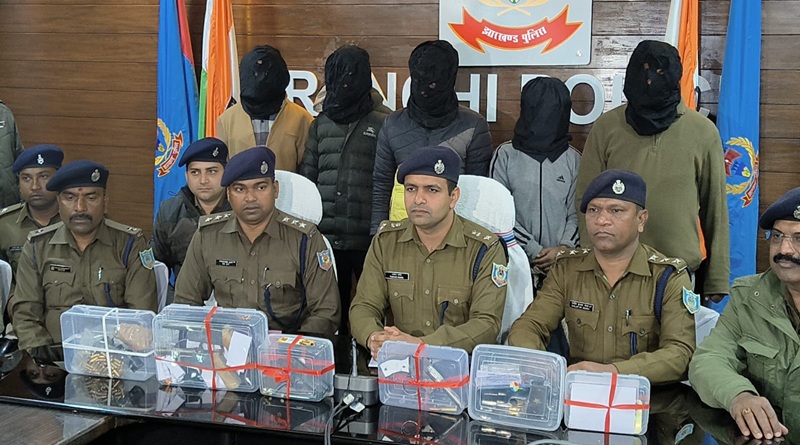 रांची पुलिस ने विभिन्न इलाकों से पांच अपराधकर्मियों को अवैध हथियार की खरीद-बिक्री के आरोप में किया गिरफ्तार, इनके पास से कई हथियार व जिन्दा गोली हुए बरामद